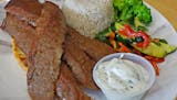 Combo of beef and lamb with lettuce, tomatoes, red onions, tzatziki sauce.